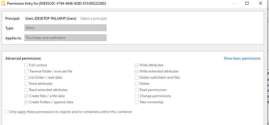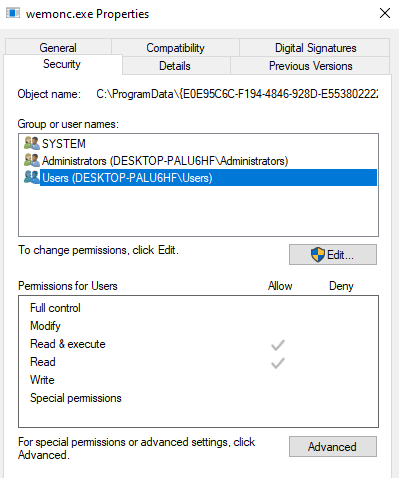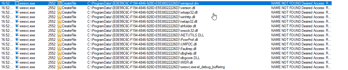 profapi.dllWhile a local attacker cannot overwrite the service binaries themselves, the default permissions allow an attacker to create new files in the installation directory: