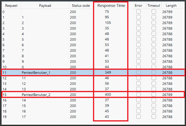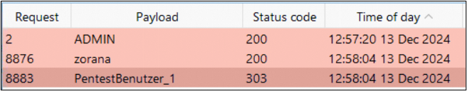 until a successful login is found. As shown in the following example, the attack was successful with the username PentestBenutzer_1.